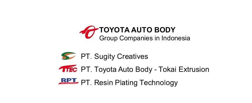 PT Sugity Creatives KARIR – PT Sugity Creatives Plant Karawang – PT Sugity Creatives merupakan anak perusahaan dari Toyota Auto Body Jepang yang bergerak di bidang produksi cetakan plastik untuk komponen otomotif. TOYOTA AUTO BODY JAPAN Ltd adalah produsen minivan, kendaraan komersial, dan kendaraan sport terkemuka yang memiliki 3 anak perusahaan di Indonesia: Sugity Creatives (SC), Toyota Auto Body – Tokai Extrusion (TTEC) dan Resin Plating Technology (RPT).